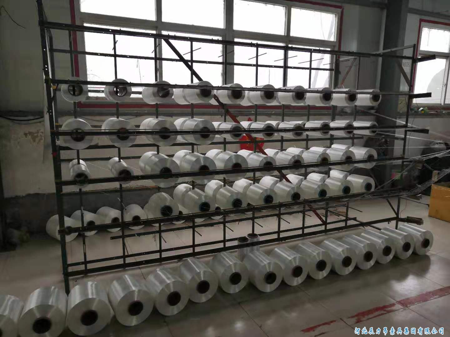 咱們現(xiàn)在不是用一步紡嘛,一步紡的意思就是把吊裝帶原材料直接弄在紗架上,然后編織成吊裝帶帶皮。整徑的意思就是,以前咱們是一開(kāi)始做吊裝帶帶皮的時(shí)候,成品的吊裝帶帶皮是絲太多,咱們那個(gè)吊裝帶編織機(jī)的那個(gè)紗架一次放不下這么多絲,所以就讓原材料一根兒一根兒的整成一個(gè)徑盤(pán)。假如說(shuō)三十六根絲整成一個(gè)徑盤(pán),整成一股線(xiàn),整經(jīng)機(jī)就是干這用的。就是多根兒絲,然后整合在一起,這就叫整徑。